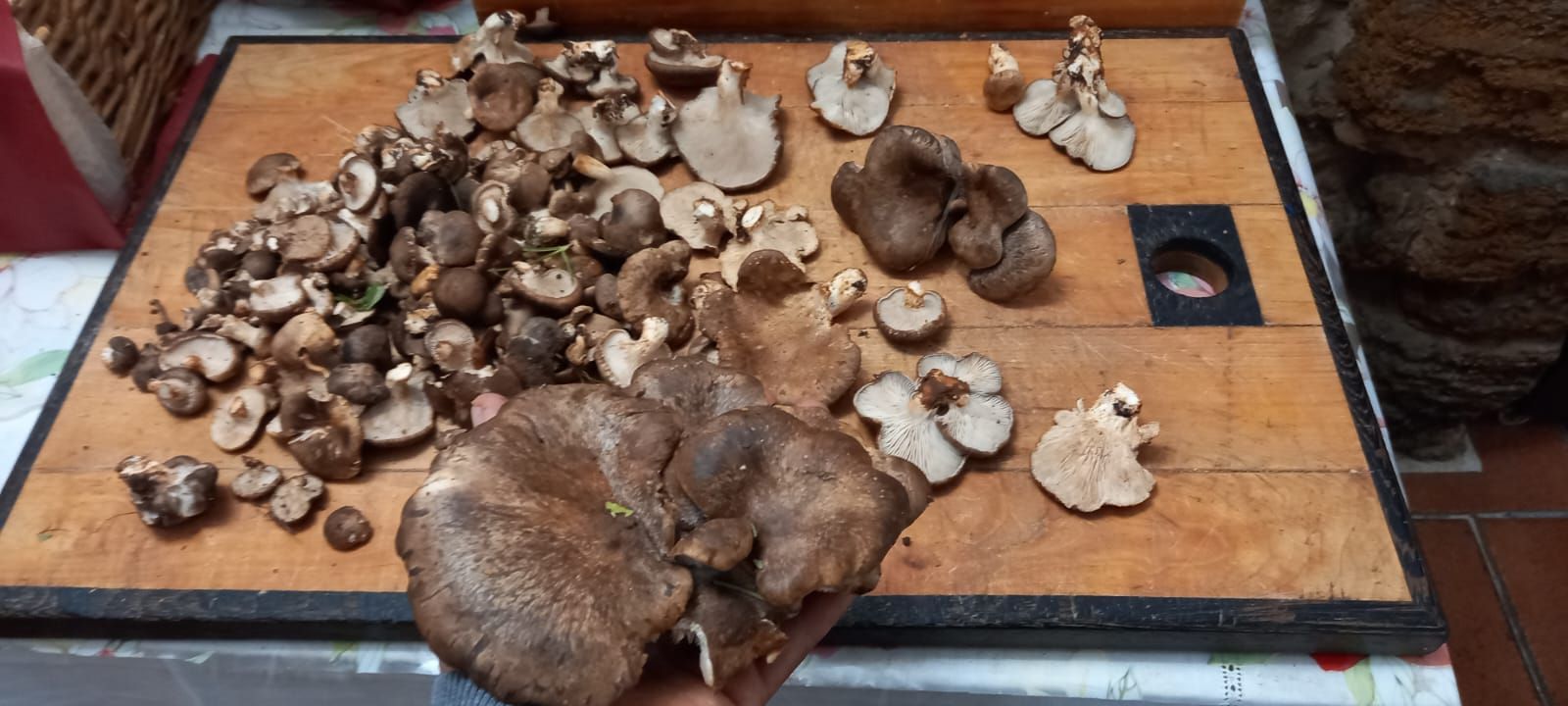 Pomodoro, mozzarella, gorgonzola, porcini, salame piccante, pomodori freschi fuori cottura e rucola